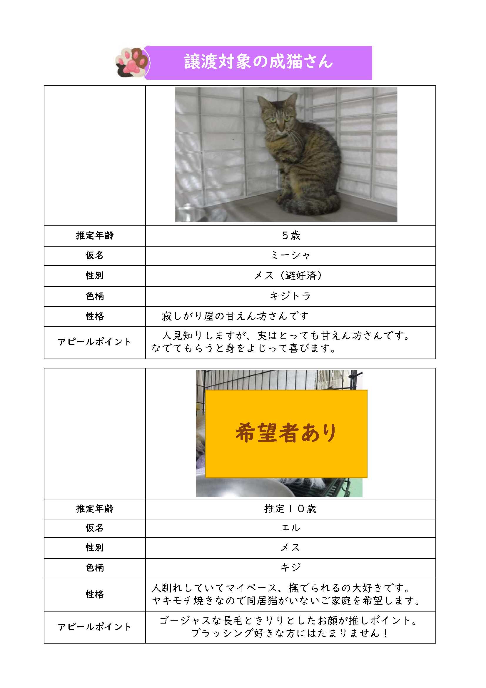 新しい飼い主さんを募集中の猫