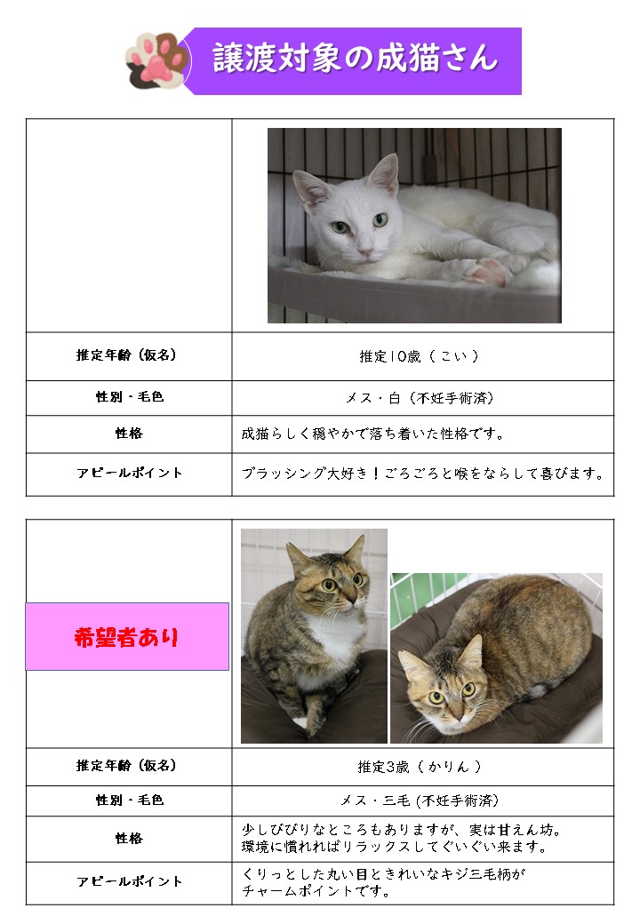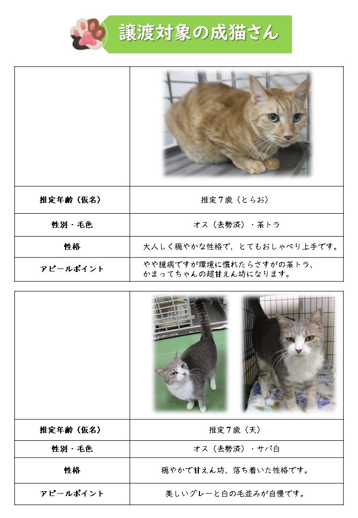 新しい飼い主さんを募集中の猫