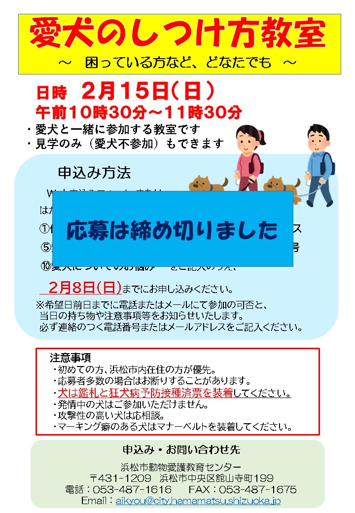 | 犬猫譲渡事前講習会は中止です。 | ||
