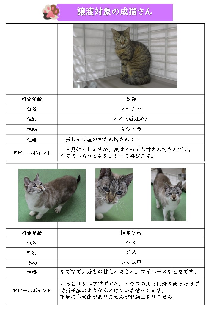 新しい飼い主さんを募集中の猫