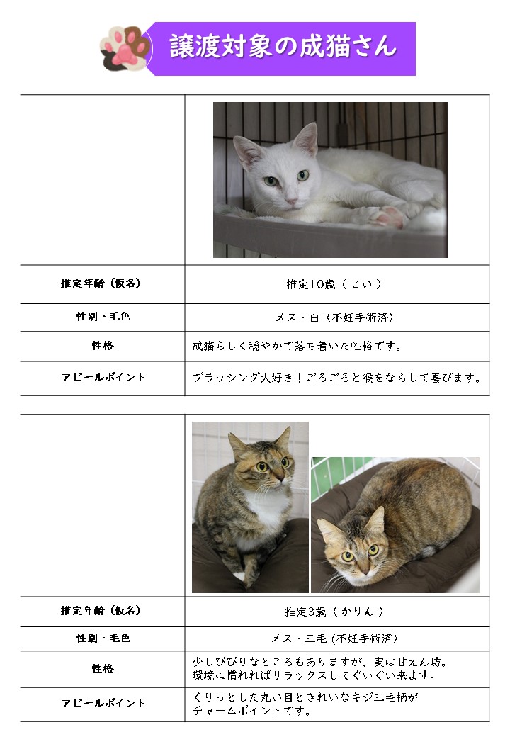 新しい飼い主さんを募集中の猫